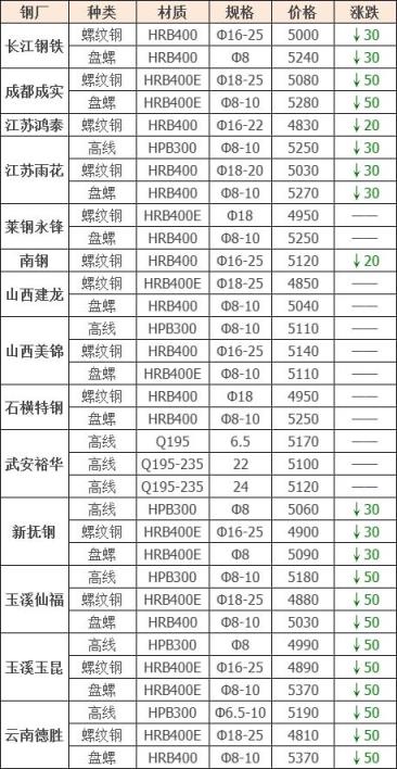 下調(diào)16家,占比64%,調(diào)價(jià)幅度20-50元/噸,